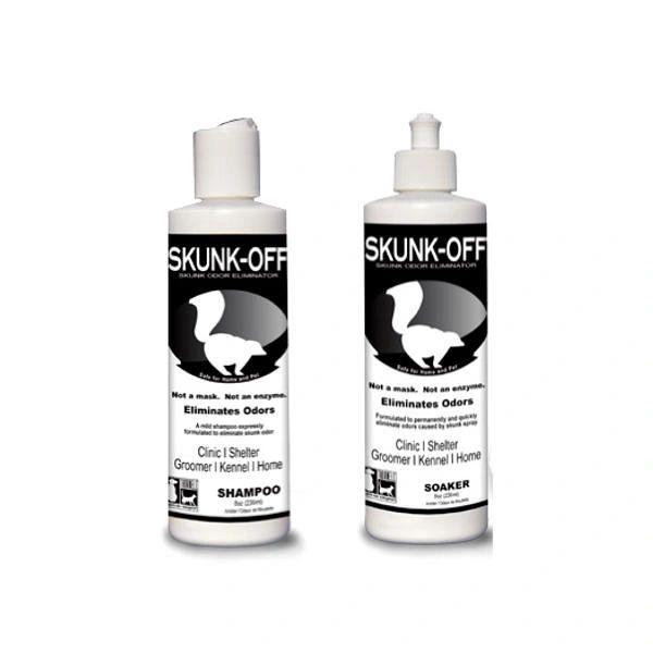 Skunked Odour Eliminating Shampoo is a mild fragrant shampoo scientifically developed to completely deodorize skunk odour or tomcat spray.